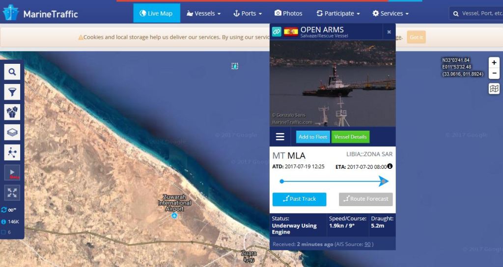 Pueden jugar ustedes mismos a ver qué pasa en la costa libia con MarineTraffic.com y VesselFinder.com