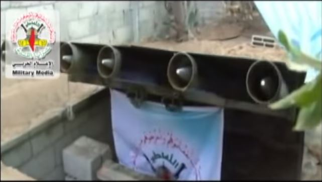 Lanzadera de cohetes del Movimiento de la Yihad Islámica camuflada al lado de una construcción.