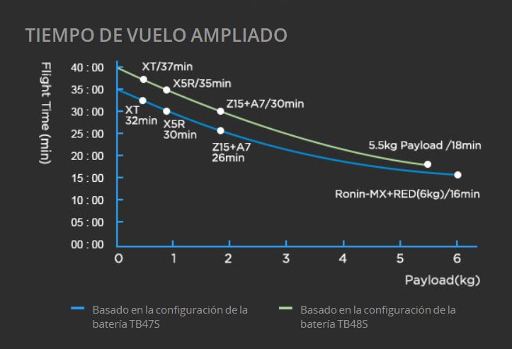 Según DJI, el dron puede llevar una carga útil de 6 kilos sacrificando la autonomía.