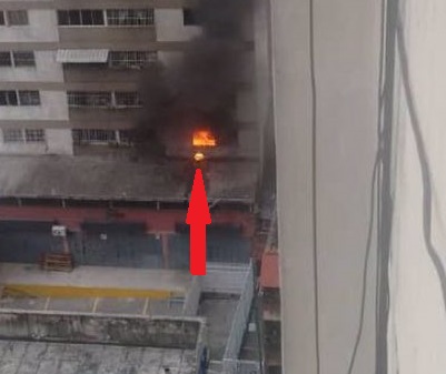 El cámara deja de enfocar al lugar donde cayó el dron tras el impacto, así que es posible que la explosión tuviera lugar momentos después. En las imágenes publicadas anteriormente y que aquí reproduje podemos apreciar el agujero en la pared exterior del edificio que podría haber sido producido por la explosión.