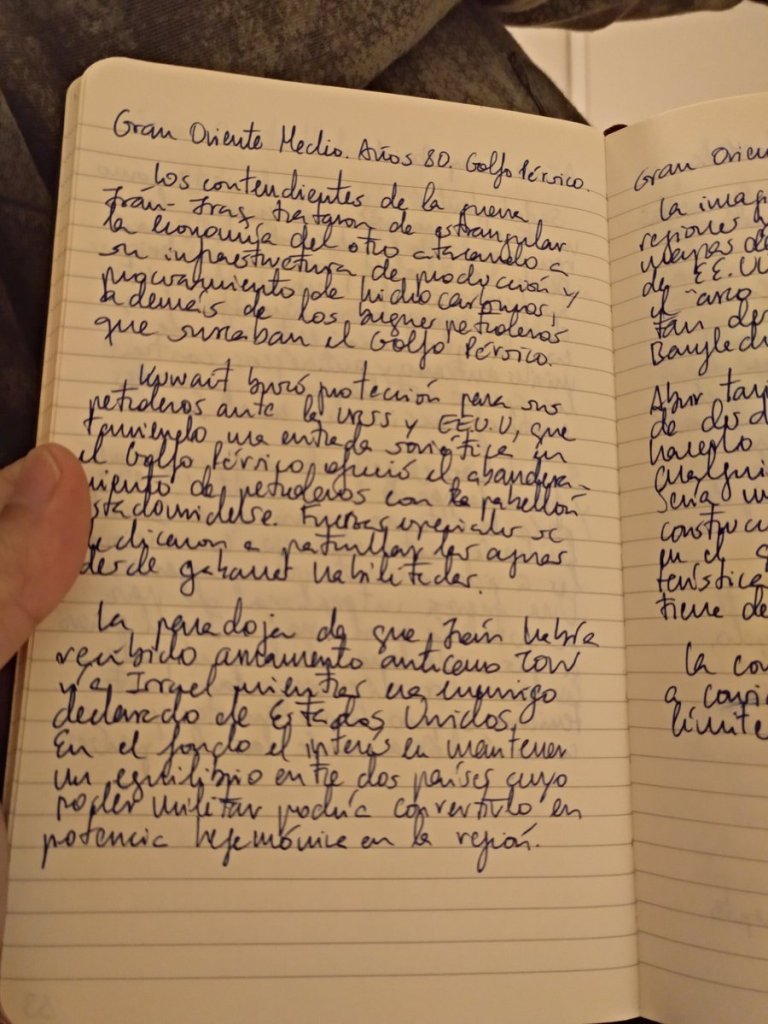 El verano pasado caí en la cuenta que la libreta donde había tomado notas y volcado ideas para los proyectos Geopolítica del siglo XXI y Geopolítica del Gran Oriente Medio era un material extenso del que no había sacado provecho alguno a pesar del tiempo invertido. Se me ocurrió empezar a pasar las anotaciones a limpio. Y descubrí que por lo menos tenía material para dos artículos. El otro día retomé el pasar al ordenador las notas y conté 190 páginas manuscritas. Quizás deba asumir de una vez por todas que antes de lanzar grandes proyectos de libro debería ir escribiendo artículos que me permitan madurar las ideas y sacar provecho tangible a corto plazo al esfuerzo de profundizar en los temas que me atraen.