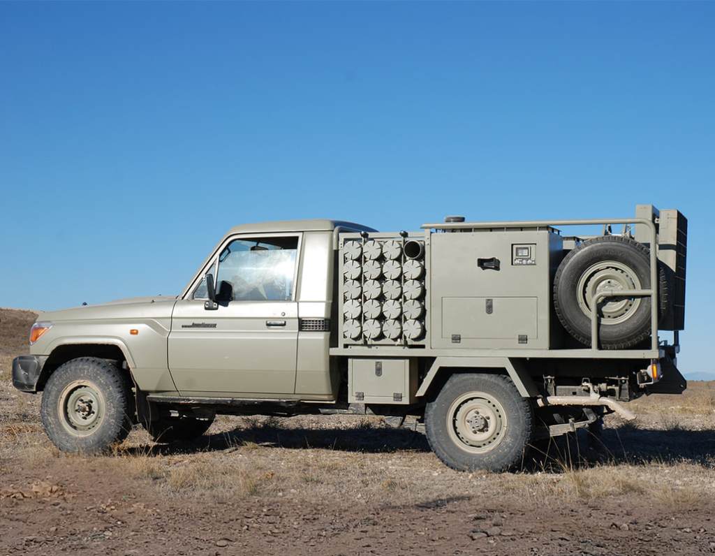 La visita se volvió aún más interesante cuando me explicaron los objetivos de la empresa para el Alakran. En vez de pensar cada vez más a lo grande y tratar de integrar el mortero en vehículos cada vez más pesados, en Ventura Defense piensan en seguir el camino contrario. Que actualmente el vehículo demostrador por antonomasia del Alakran sea el Toyota Land Cruiser HZJ79 es toda una declaración de intenciones.
