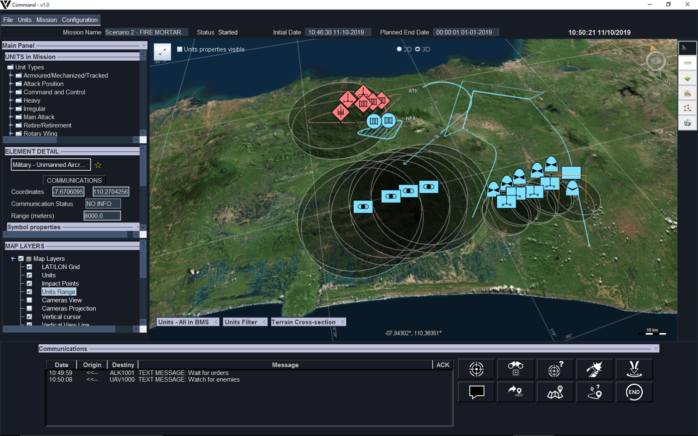 Precisamente en la pasada feria IDEX 2021, Ventura Defense presentó su sistema 1Command de mando y control (C2) para el «entorno de batalla conectado». Se trata de un conjunto de aplicaciones que reúne un sistema de gestión del campo de batalla a nivel táctico (1C-FCS), un sistema de gestión de apoyos de fuego indirectos (1C-ACS), un sistema de adquisición de blancos para observadores avanzados (1C-FOS), un sistema de puntería para morteros y otras armas de fuego indirecto (1C-MAS) y un sistema de gestión de operaciones de combate con el sistema Alakran (1C-Alakran). 1Command funciona con mapas de la multinacional sueca Hexagon Geoespatial, proveedora de sistemas de información geográfica Navantia para las futuras fragatas F110 españolas. He de confesar que les di bastante conversación y no les dio tiempo de enseñarme in situ el sistema 1Command, pero estoy seguro que me habría quedado superado por un sistema de gestión del campo de batalla y su múltiples capas de información y pantallas si me lo hubieran enseñado a última hora a la carrera.
