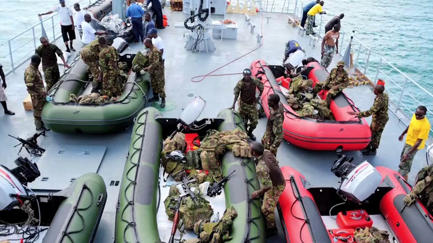 Militares keniatas en una embarcación RHIB.