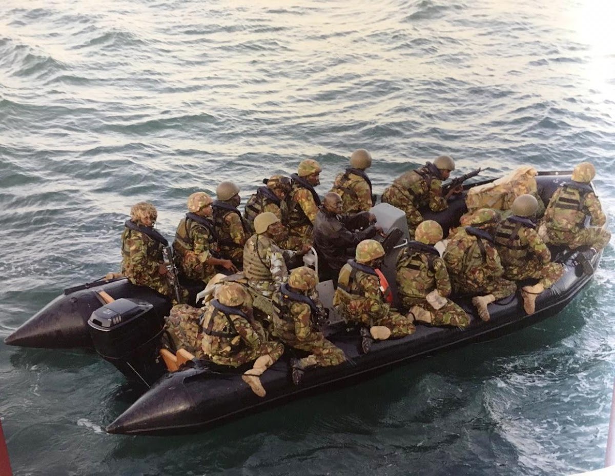 Militares keniatas en una embarcación RHIB.