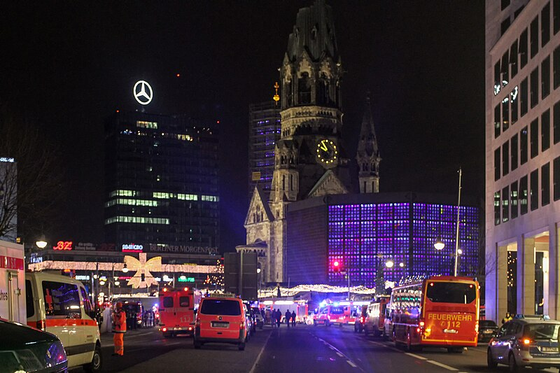 El 19 de diciembre un camión se lanzó contra un mercadillo navideño en Berlín, atropellando a decenas de personas con el resultado de 12 personas fallecidas y más de medio centenar de heridos. El ataque tuvo lugar en Breitscheidplatz, la plaza que alberga la iglesia conmemorativa del káiser Guillermo I, una zona turística y comercial que constituía el centro de Berlín Oeste cuando la ciudad estaba dividida en dos.