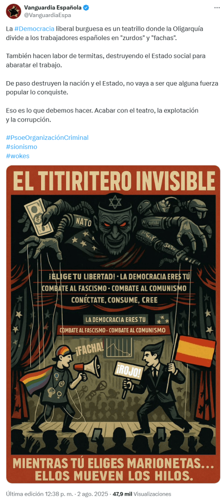 El primer caso que me llamó la atención tiene que ver con Santiago Armesilla, miembro de esa generación de marxistas españoles que a través del pensamiento de Gustavo Bueno terminaron convergiendo en el rojopardismo y hoy lo encontramos en Vanguardia Española.
